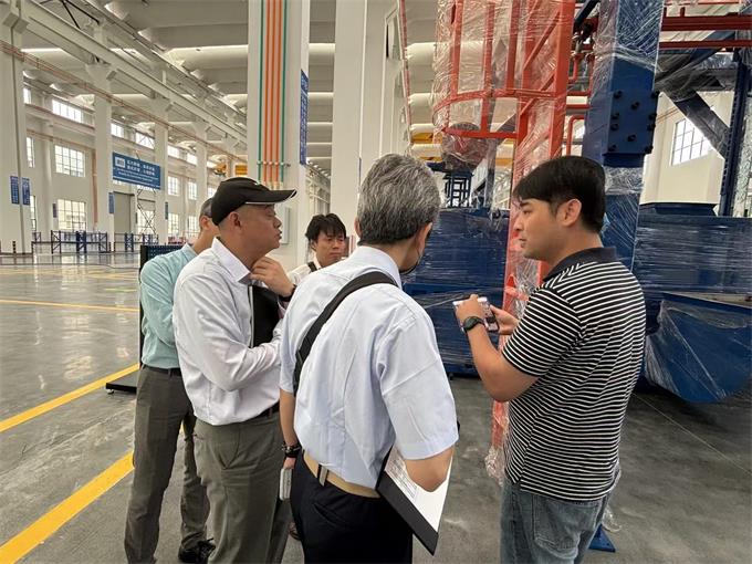 國(guó)外客戶考察鋁擠壓設(shè)備生產(chǎn)車間圖